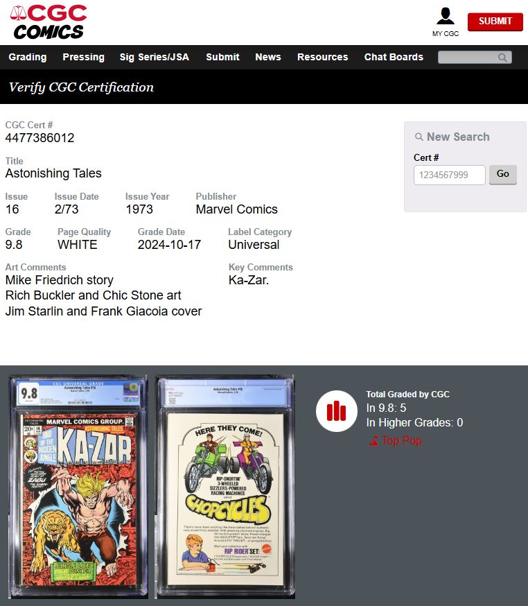 Astonishing Tales #16 CGC 9.8 White Pages 1973 Marvel Comics Ka-Zar (1 of 5)
