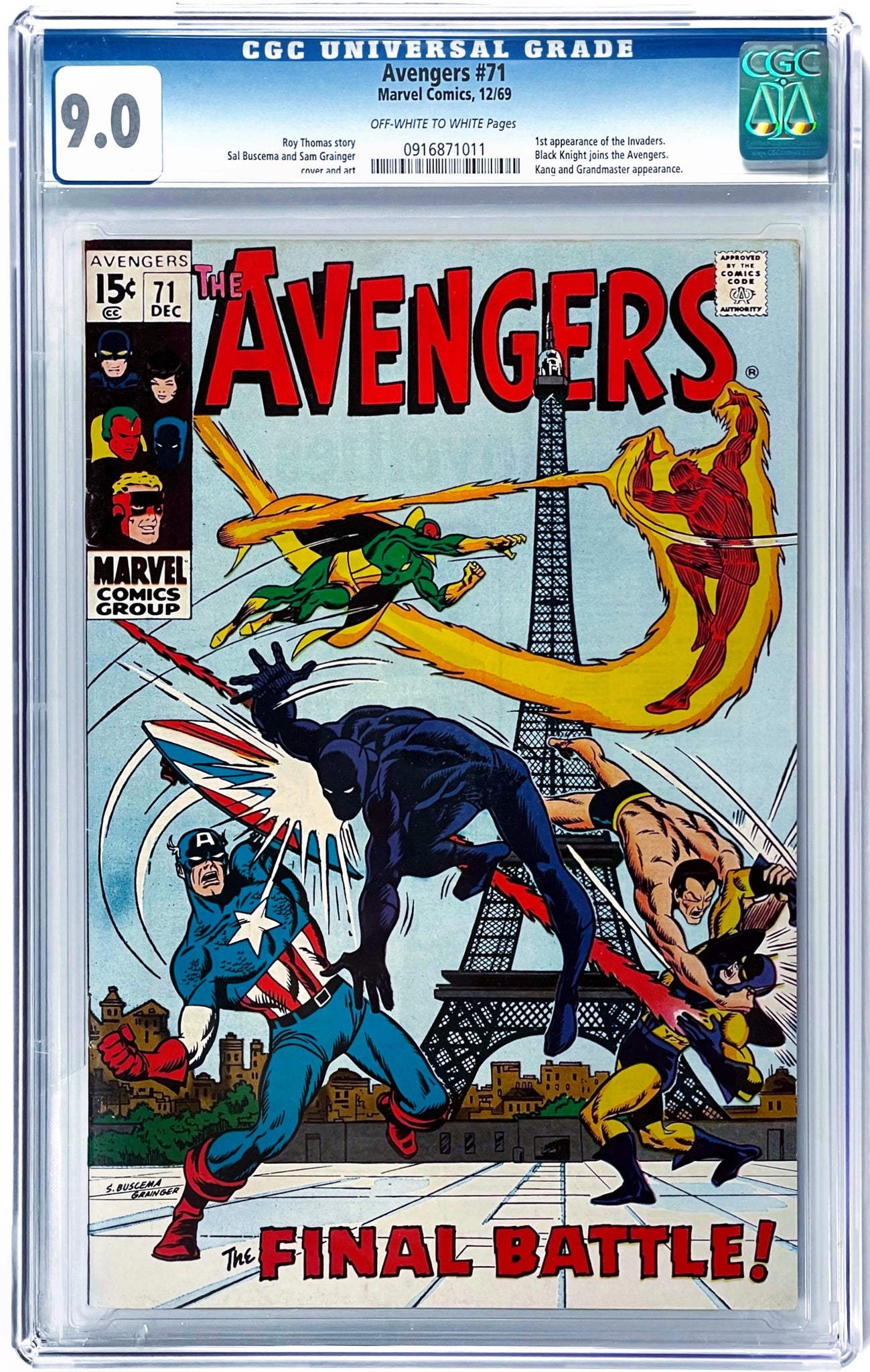Avengers #71 CGC 9.0 1969 Marvel Comics 1st Appearance Invaders (UNPRESSED)