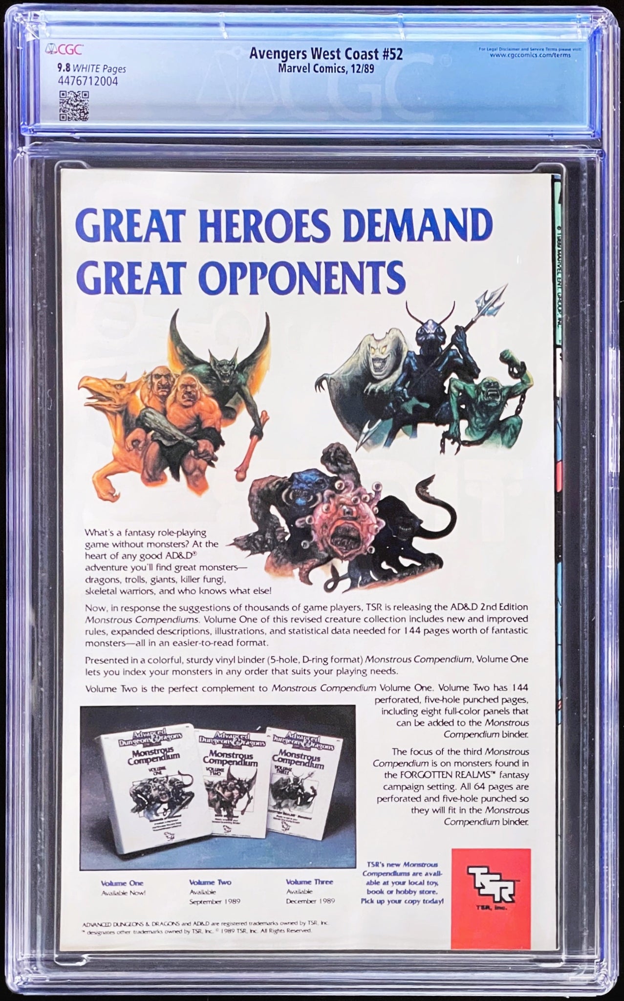 Avengers West Coast #52 CGC 9.8 White Pages 1989 Marvel Comics Mephisto Key