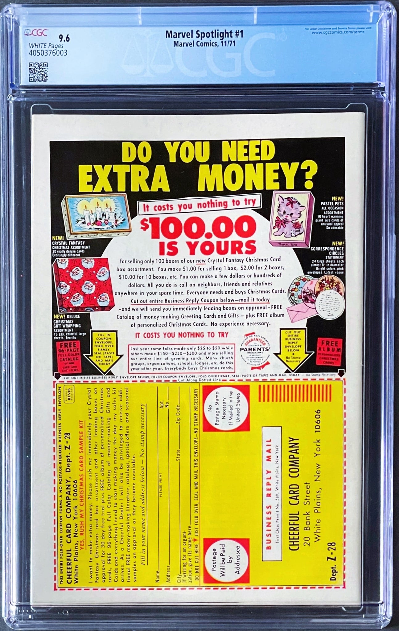 Marvel Spotlight #1 CGC 9.6 White Pages 1971 Marvel Comics + Red Wolf #1 CGC 9.8 (1 of 2)