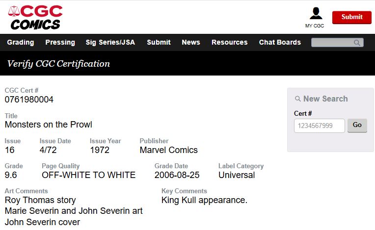 Monsters on the Prowl #16 CGC 9.6 NM+ 1st Appearance Thulsa Doom 1972 Marvel Comics