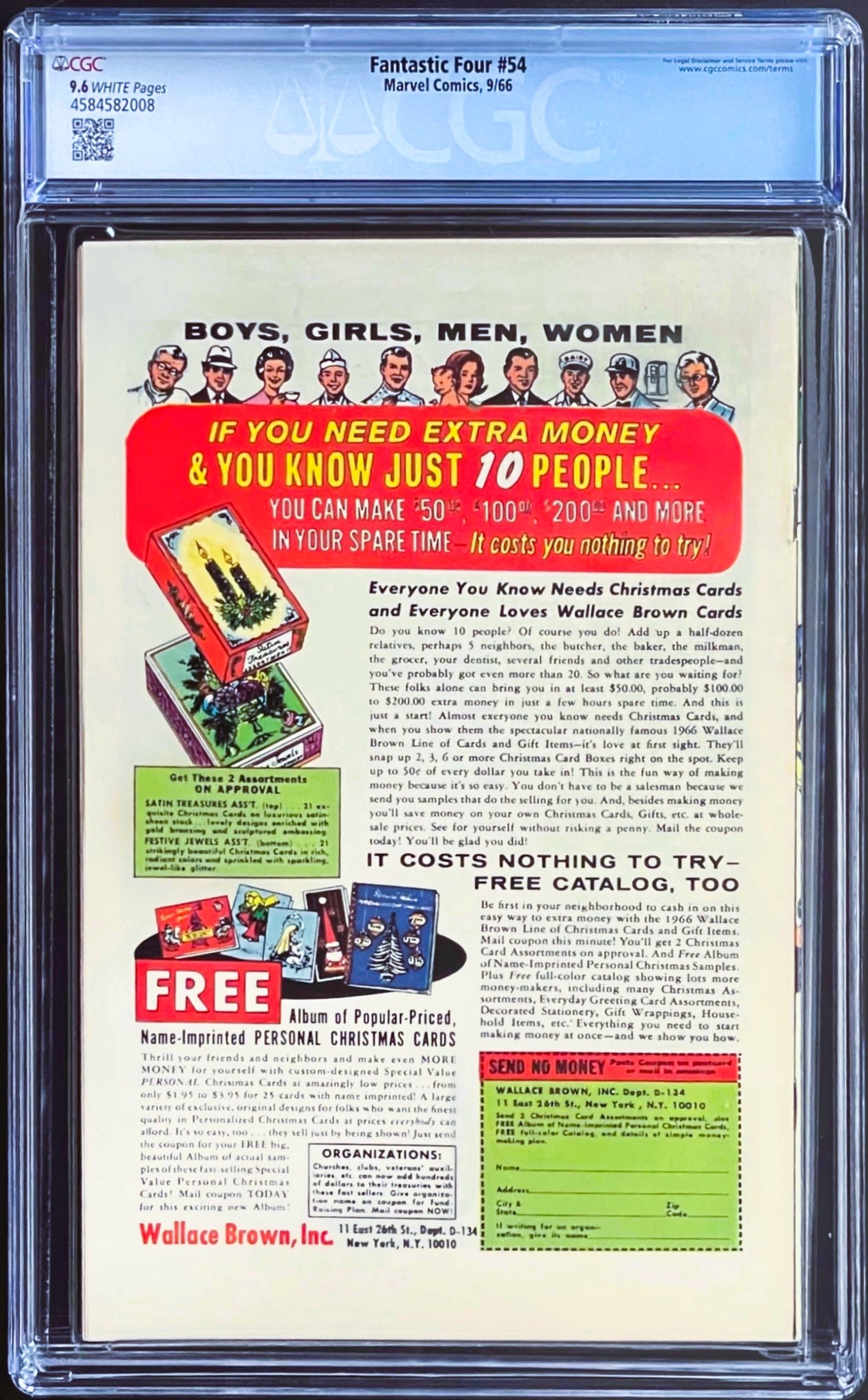 FANTASTIC FOUR #54 CGC 9.6 White Pages 1966 Marvel Comics 1st Evil Eye