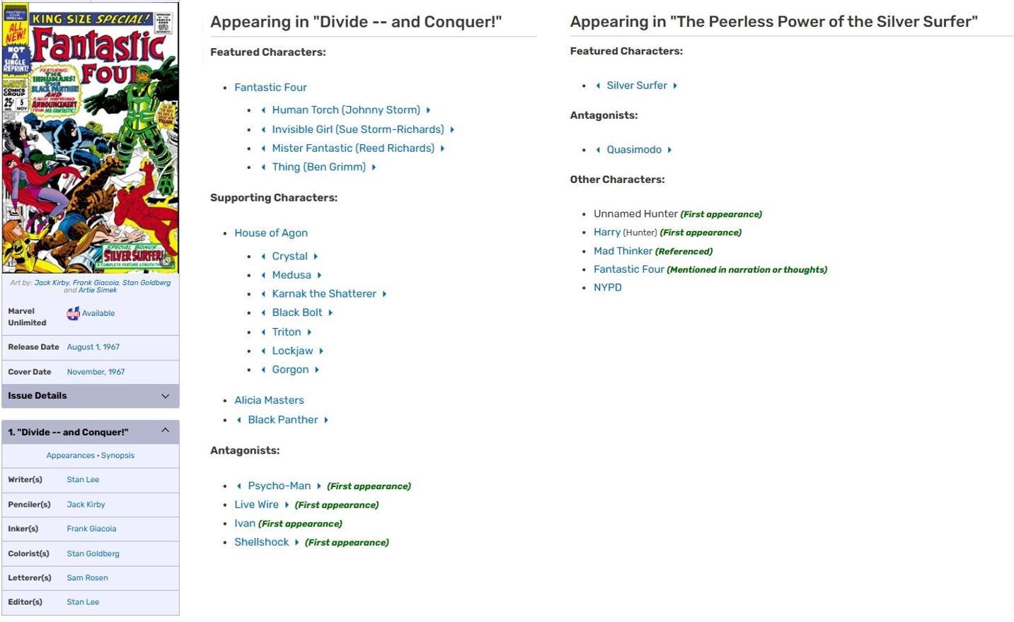 Marvel Comics Menu