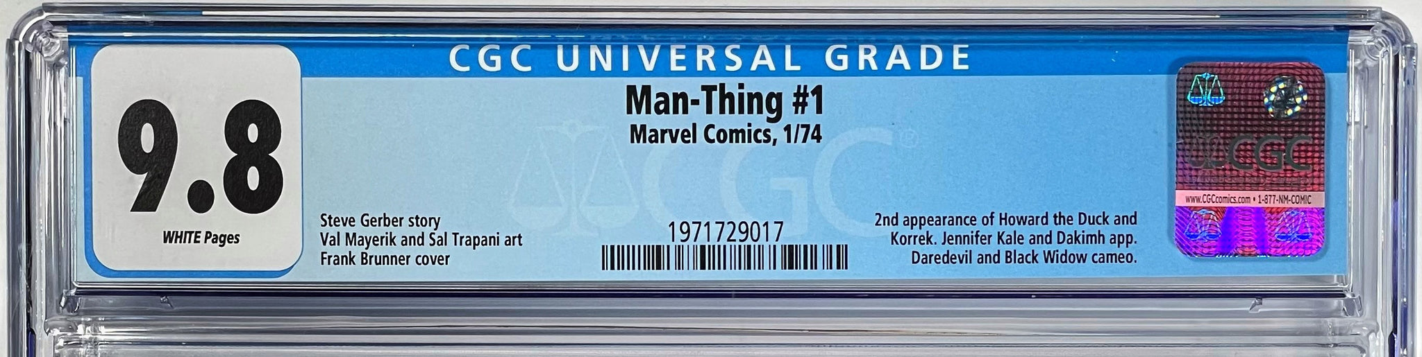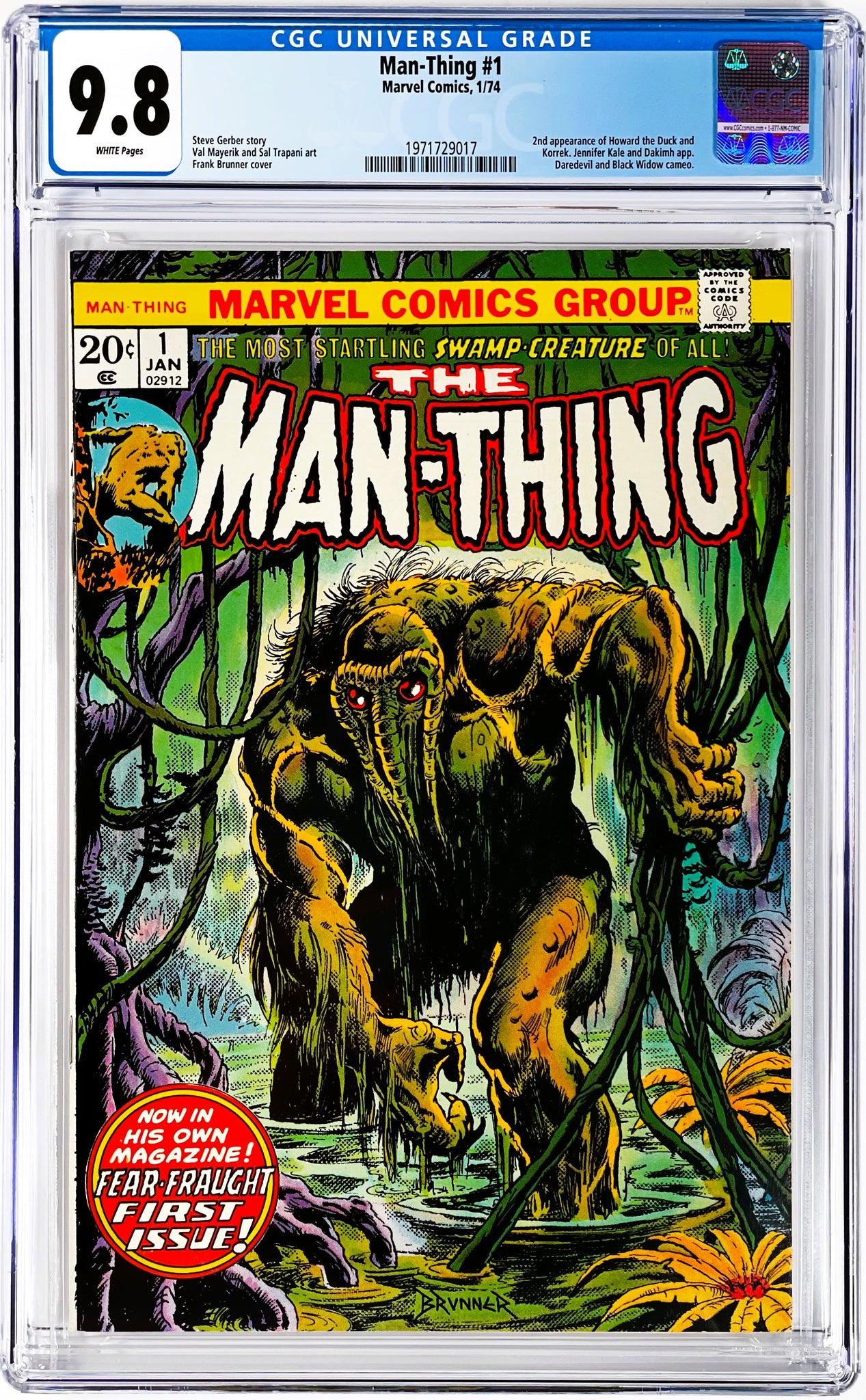Man-Thing #1 CGC 9.8 White Pages 1974 Marvel Comics 2nd Appearance Howard the Duck