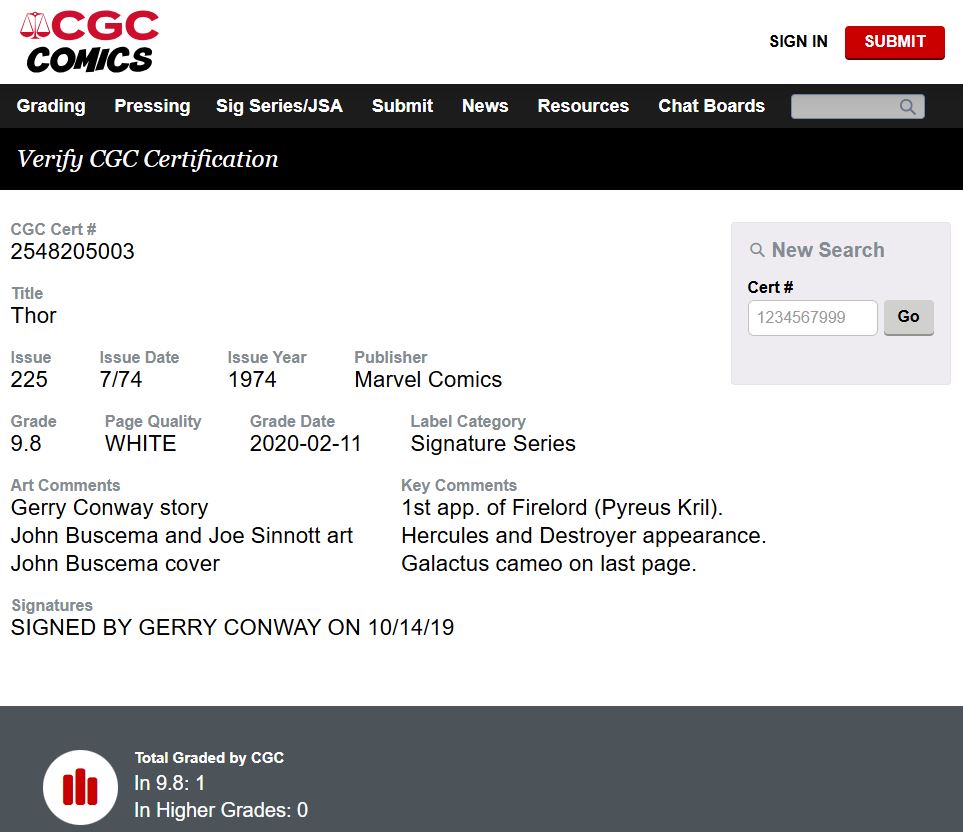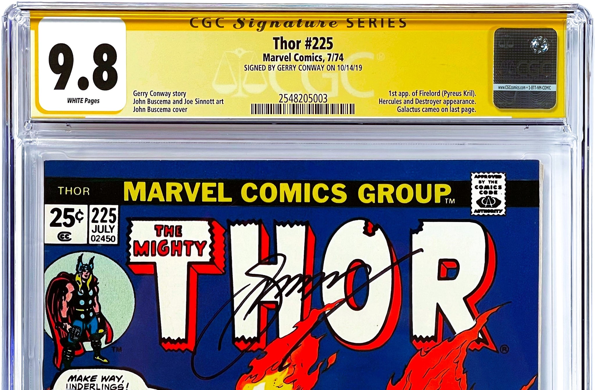 Thor #225 CGC 9.8 SS Signed Gerry Conway 1974 Marvel Comics 1st App FIRELORD