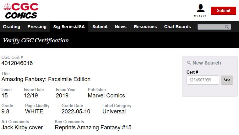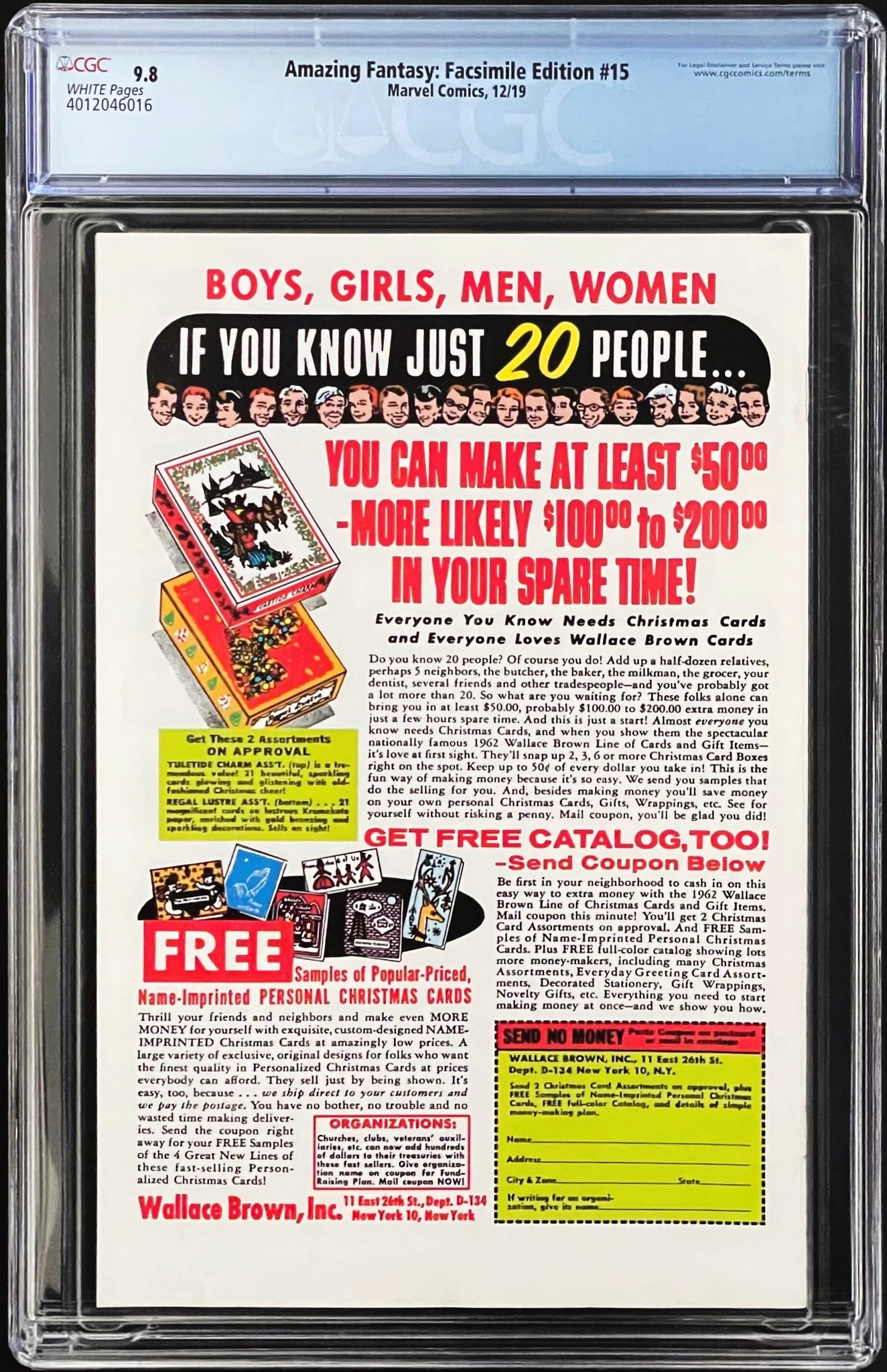 Amazing Fantasy Facsimile Edition #15 CGC 9.8 White Pages 2019 Marvel Comics