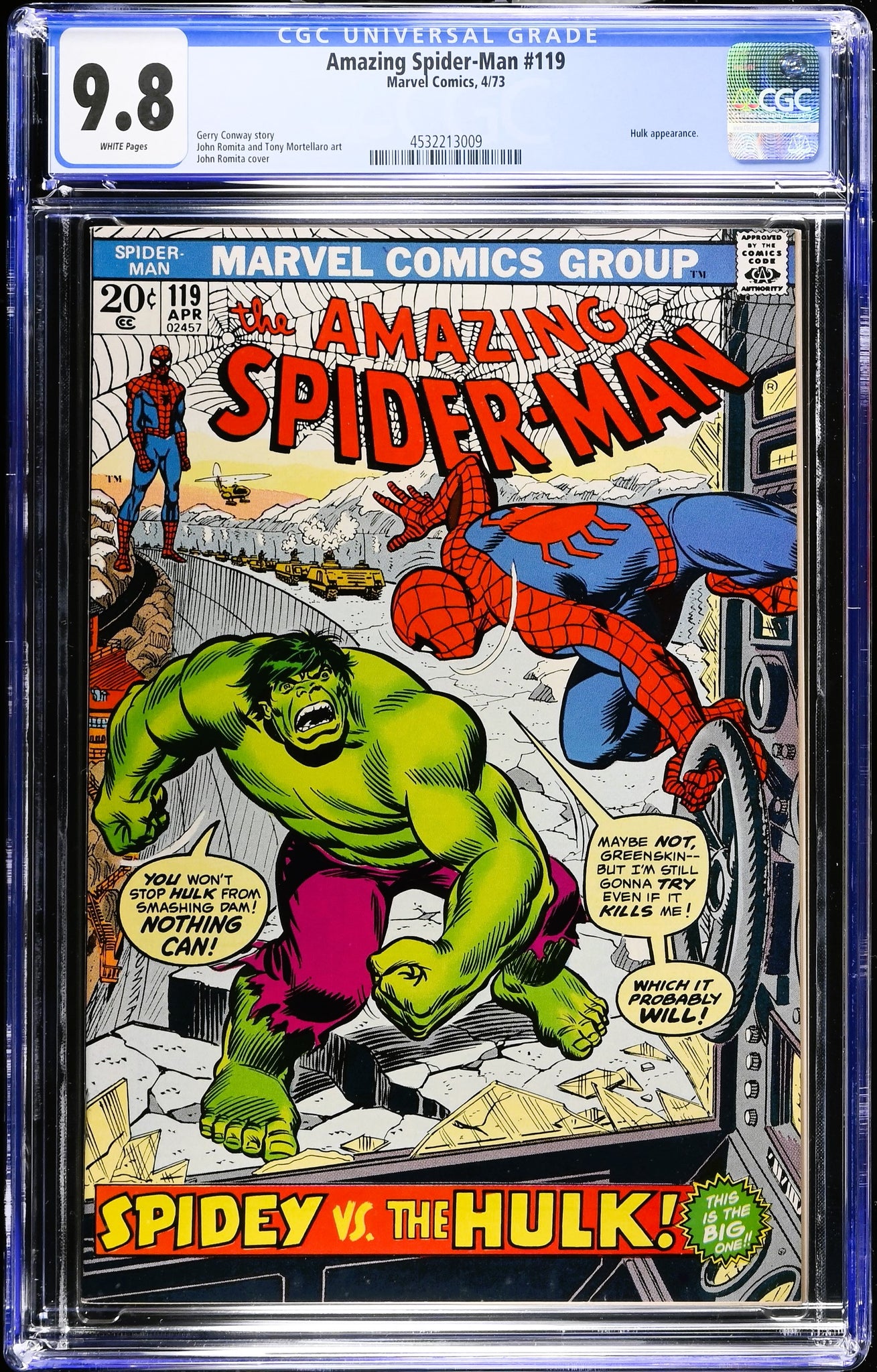 Amazing Spider-Man #119 CGC 9.8 White 1973 Marvel Comics Hulk Battle Cover