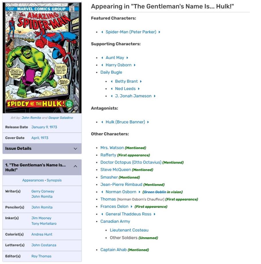 Marvel Comics Menu