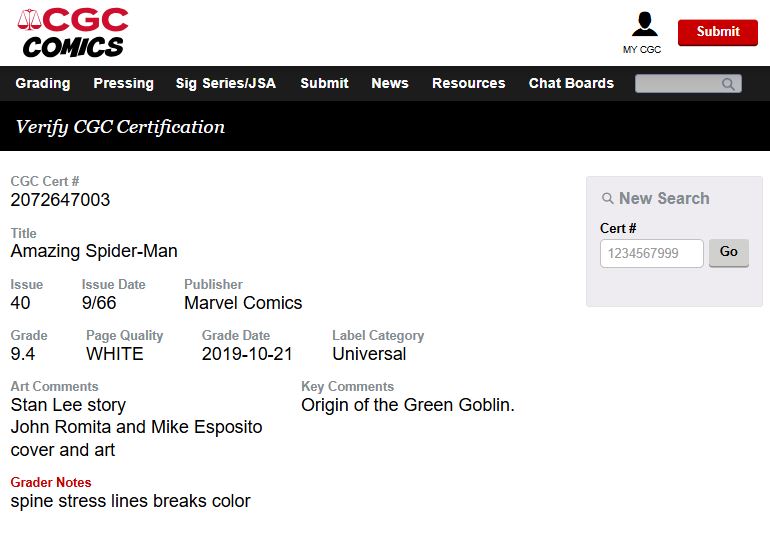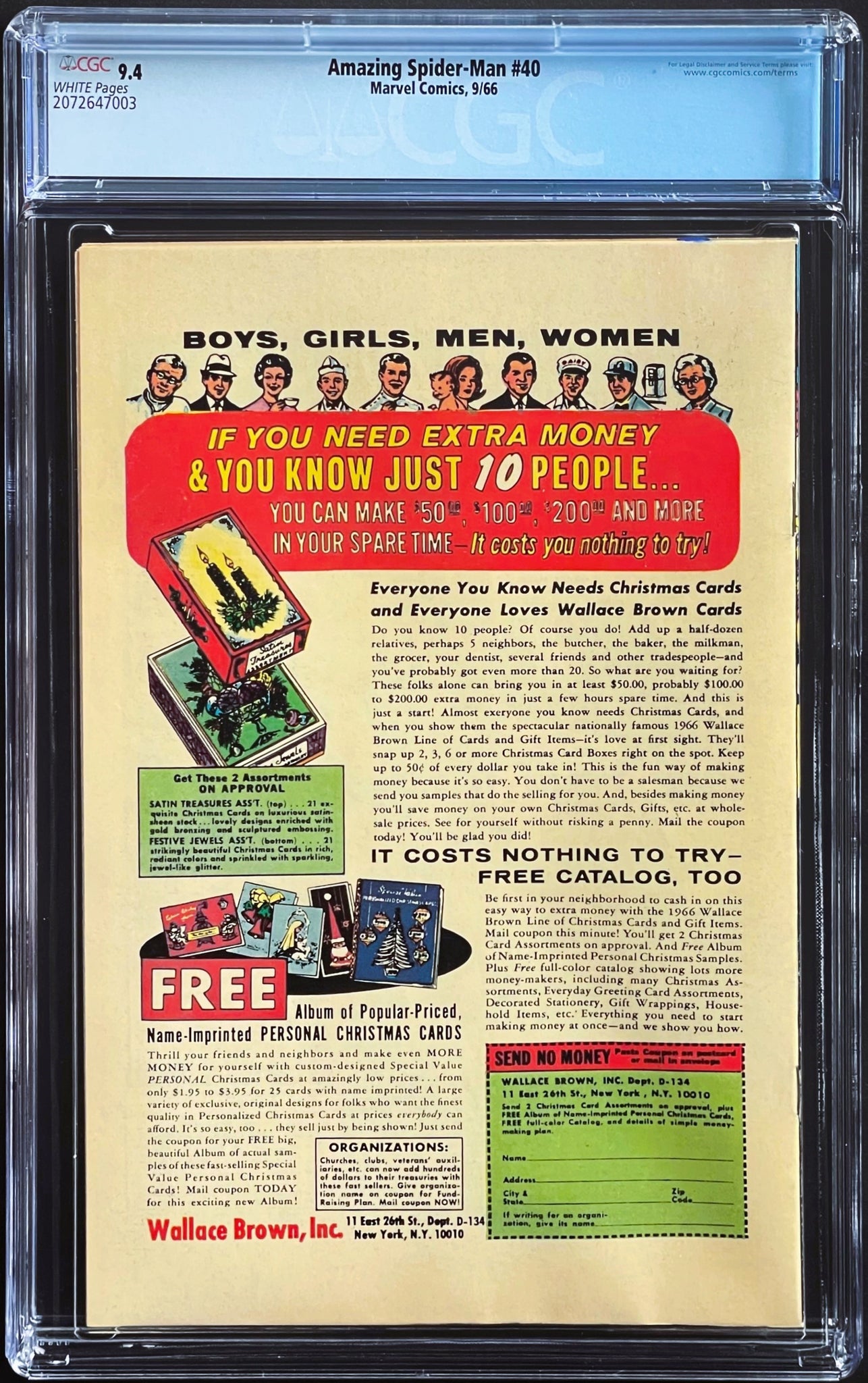 Amazing Spider-Man #40 CGC 9.4 White Pages 1966 Marvel Comics