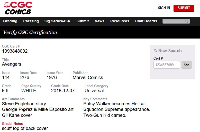Avengers #144 CGC 9.6 White Pages 1st Appearance Hellcat 1976 Marvel Comics