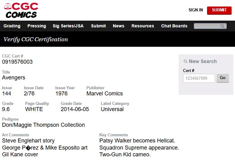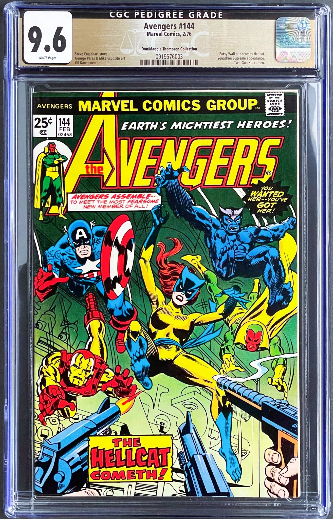 Avengers #144 CGC 9.6 White Pages Don/Maggie THOMPSON PEDIGREE 1976 Marvel Comics