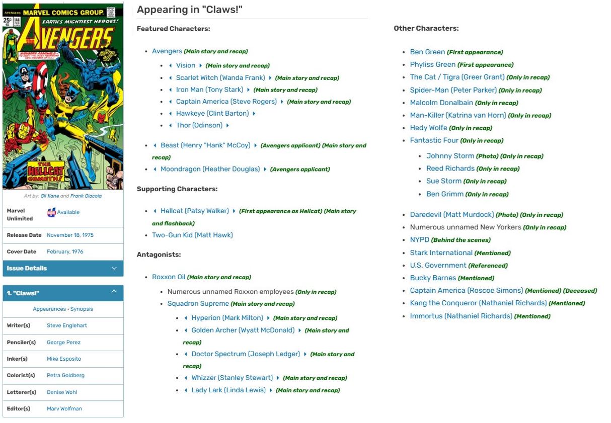 Marvel Comics Menu