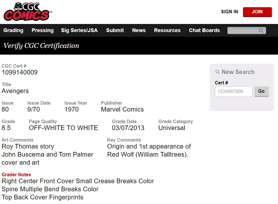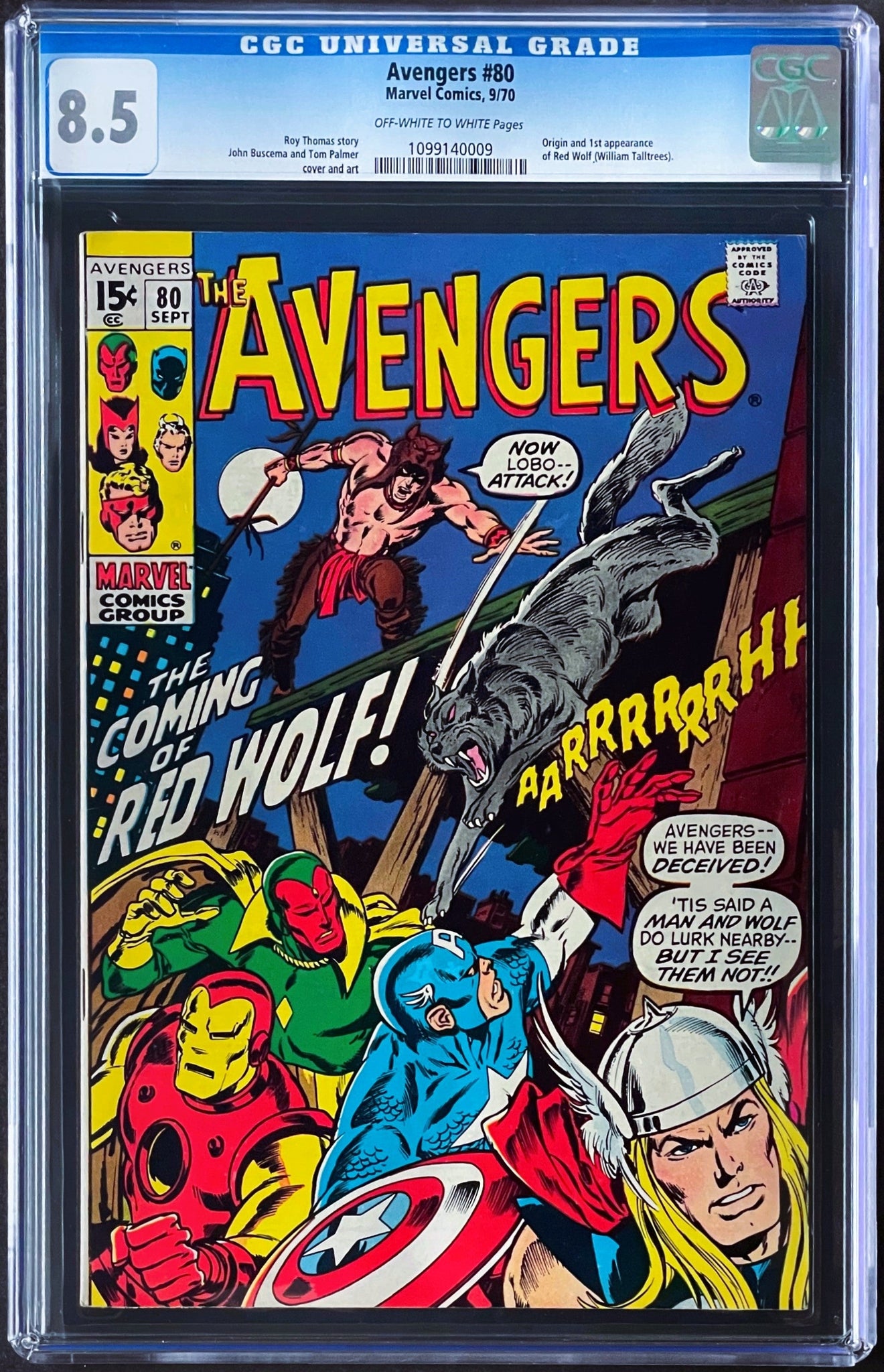 Avengers #80 CGC 8.5 1st Appearance Red Wolf 1970 Marvel Comics (Unpressed)