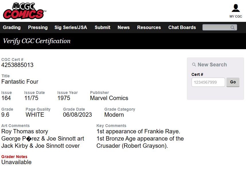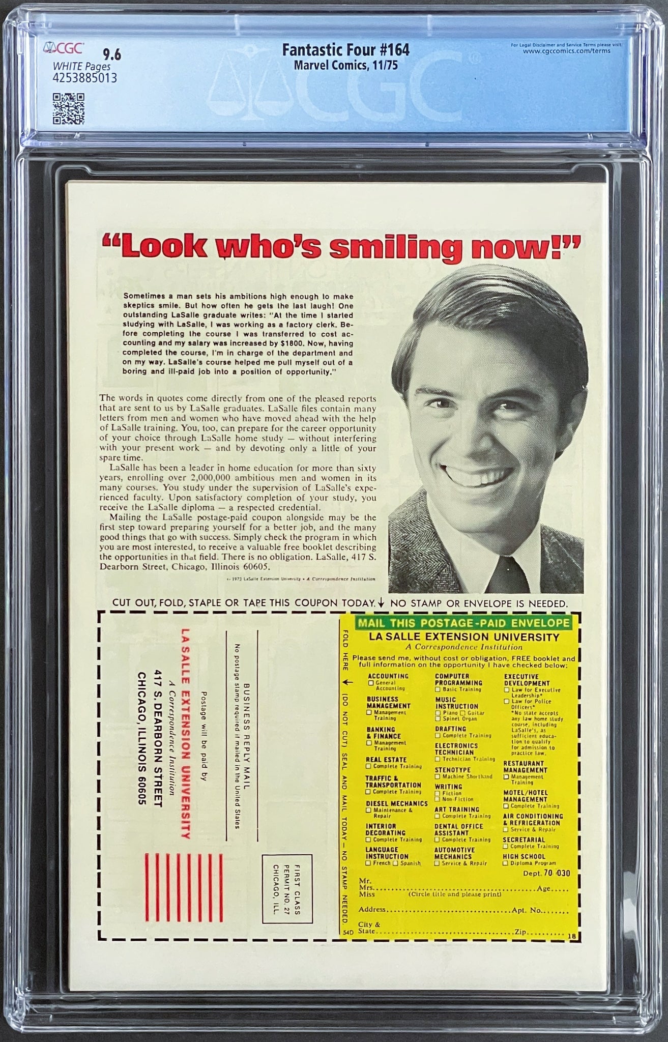 Fantastic Four #164 CGC 9.6 White 1975 Marvel Comics 1st Appearance Frankie Raye & the Crusader
