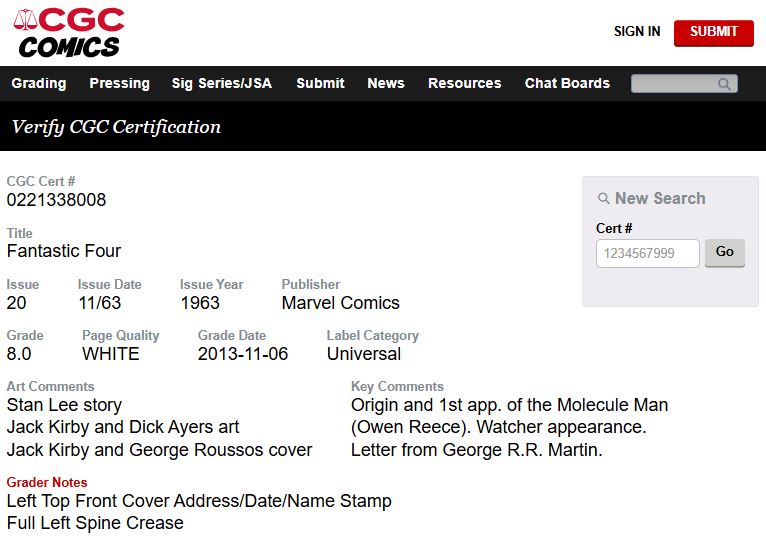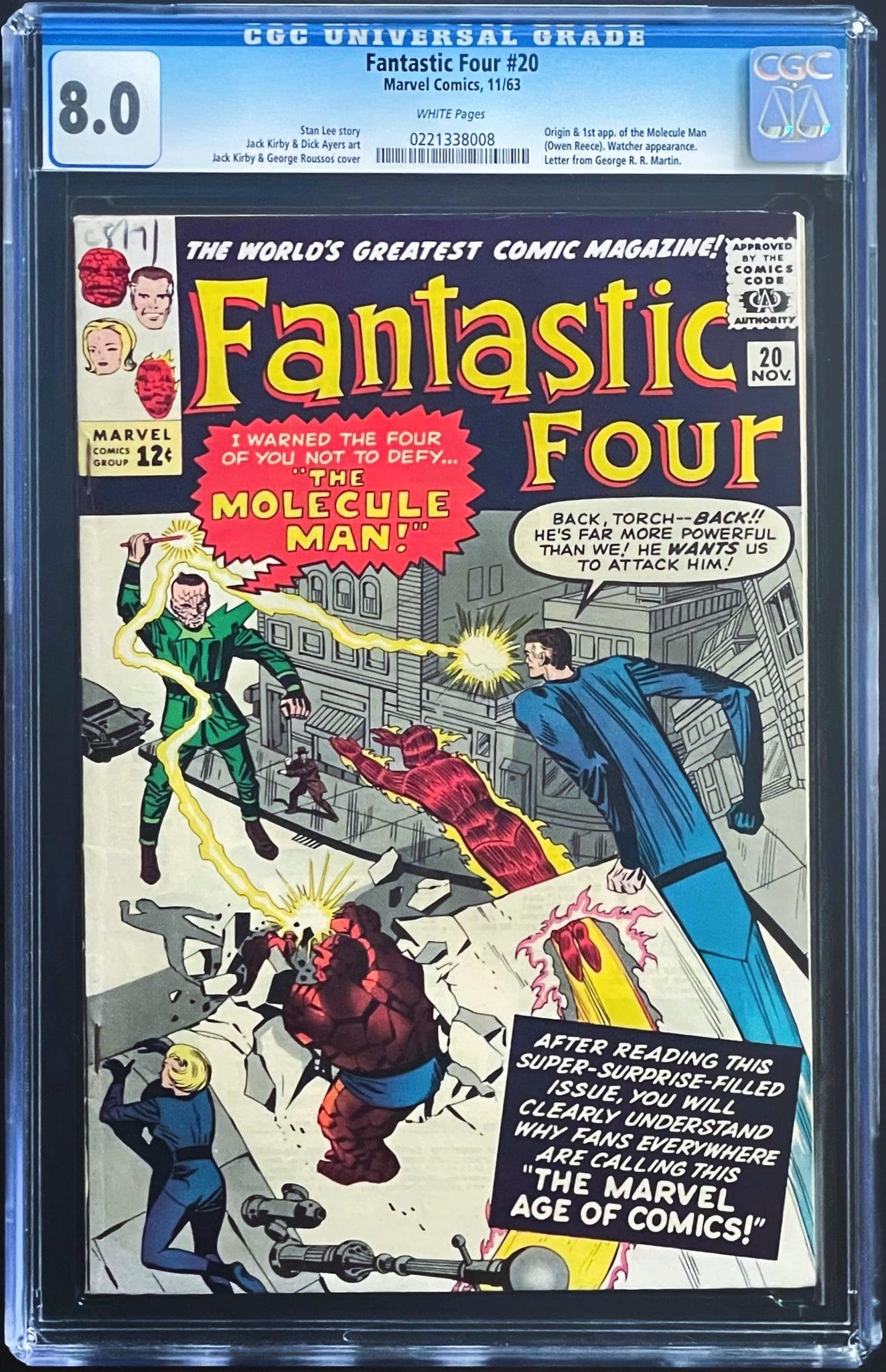 Fantastic Four #20 CGC 8.0 White 1st Molecule Man 1963 Marvel Comics (Unpressed)