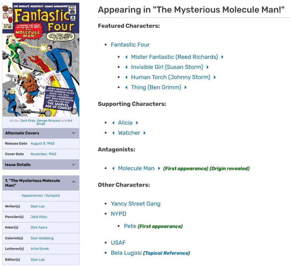 Marvel Comics Menu