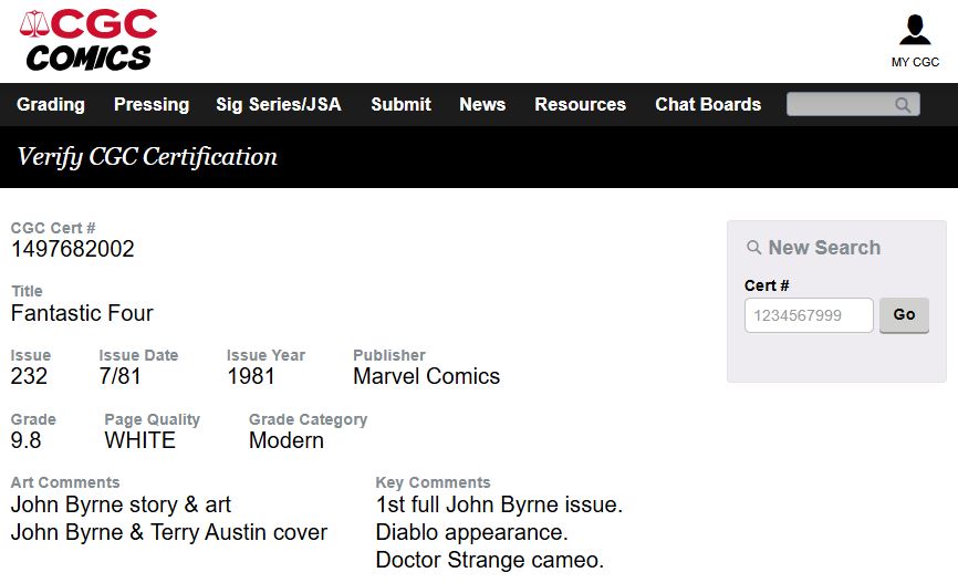 Fantastic Four #232 CGC 9.8 White 1981 Marvel Comics 1st John Byrne Full Issue