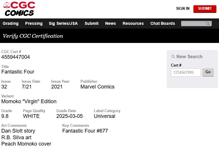 Fantastic Four #32 MoMoko Virgin 1:100 Variant CGC 9.8 Marvel Comics 2021