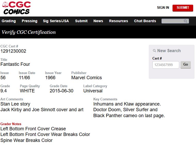 Fantastic Four #56 CGC 9.4 White Pages 1966 Marvel Comics (Unpressed)