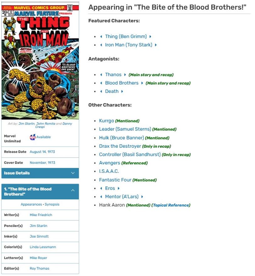 Marvel Comics Menu