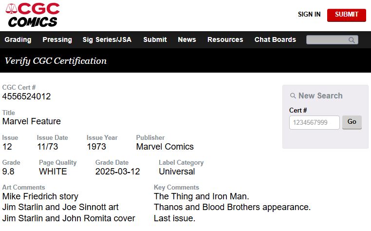 Marvel Feature #12 CGC 9.8 White Pages 1973 Marvel Comics