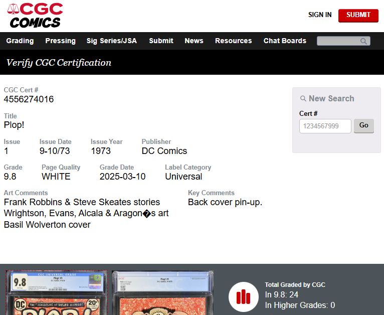 Plop! 1 CGC 9.8 White Pages 1973 DC Comics Sergio Aragones Bernie Wrightson Art