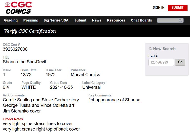 Shanna the She-Devil #1 CGC 9.4 White Pages 1972 Marvel Comics 1st Appearance (Unpressed)