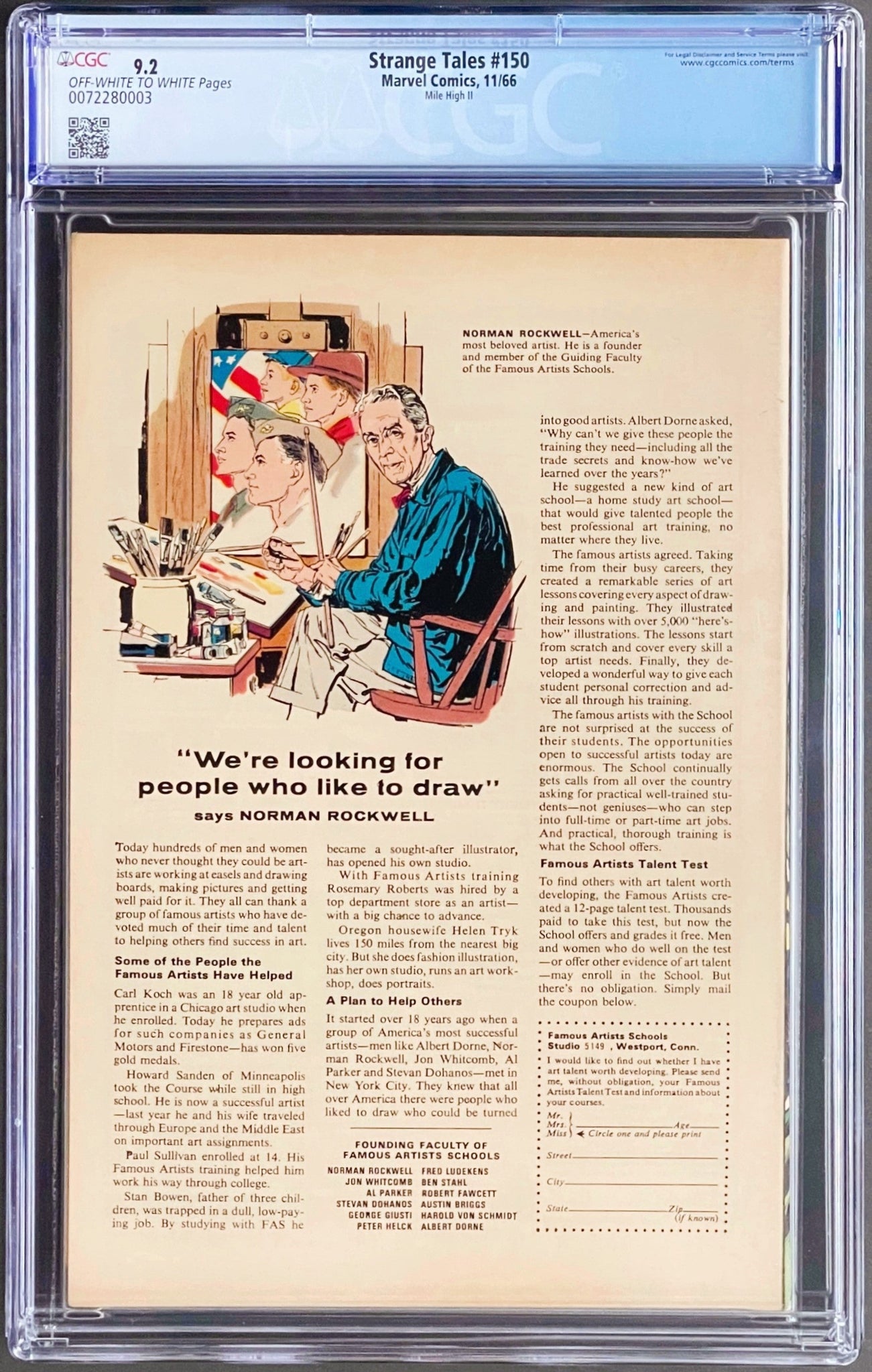 Strange Tales #150 CGC 9.2 1966 Marvel Comics MILE HIGH II PEDIGREE (UNPRESSED)