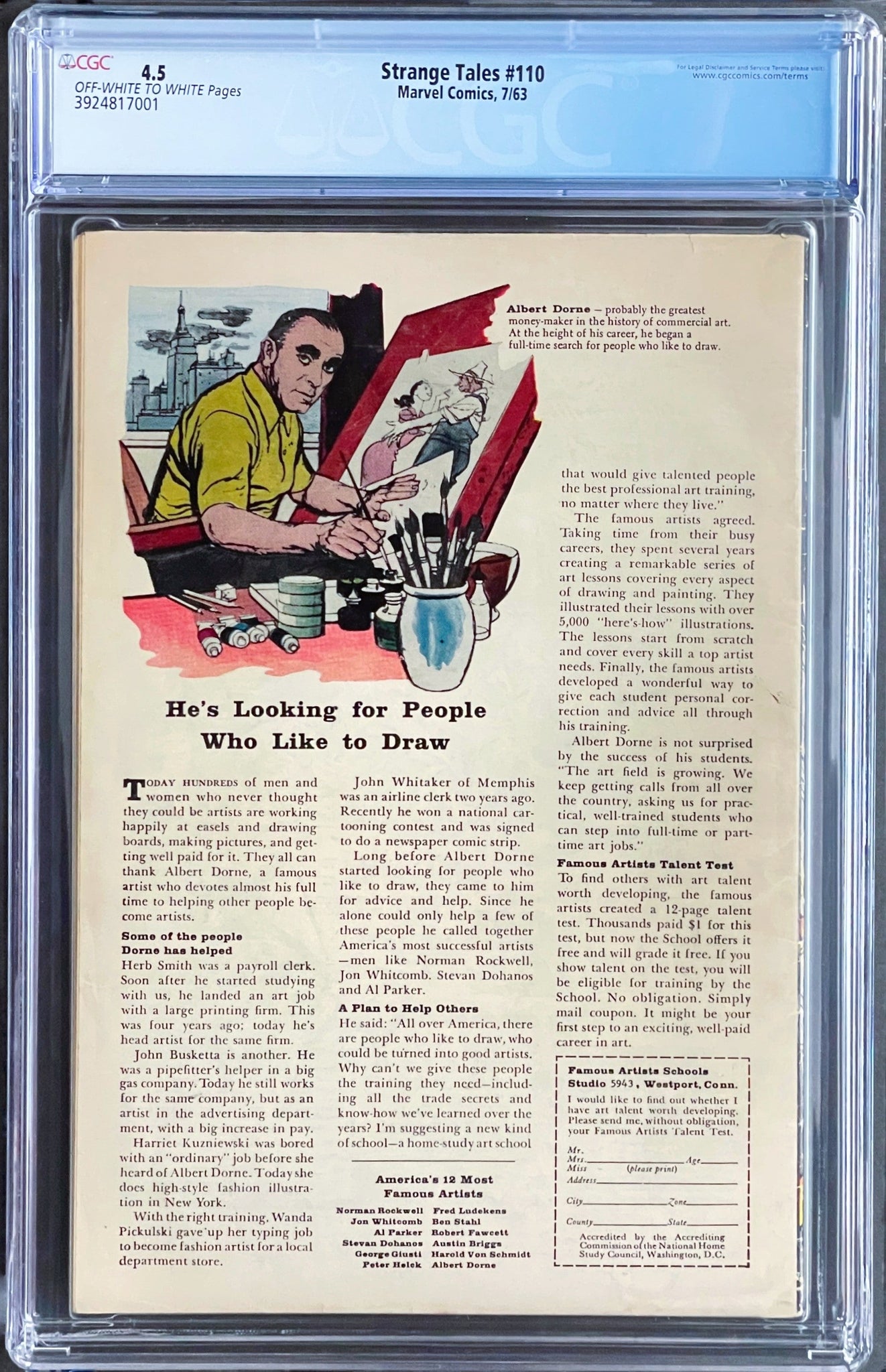 Strange Tales #110 CGC 4.5 1963 Marvel Comics 1st Appearance Doctor Strange