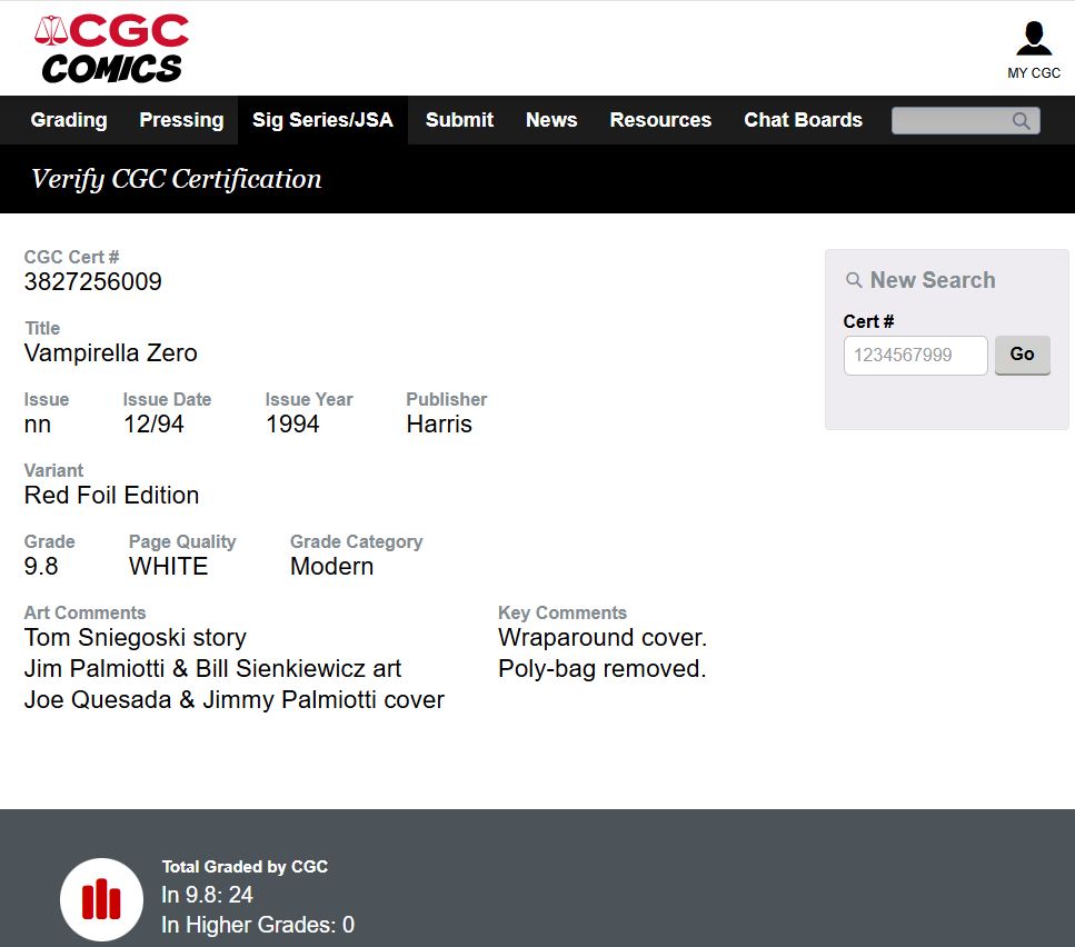 Vampiella Zero Red Foil Edition CGC 9.8 1994 Harris Comics Wraparound Cover