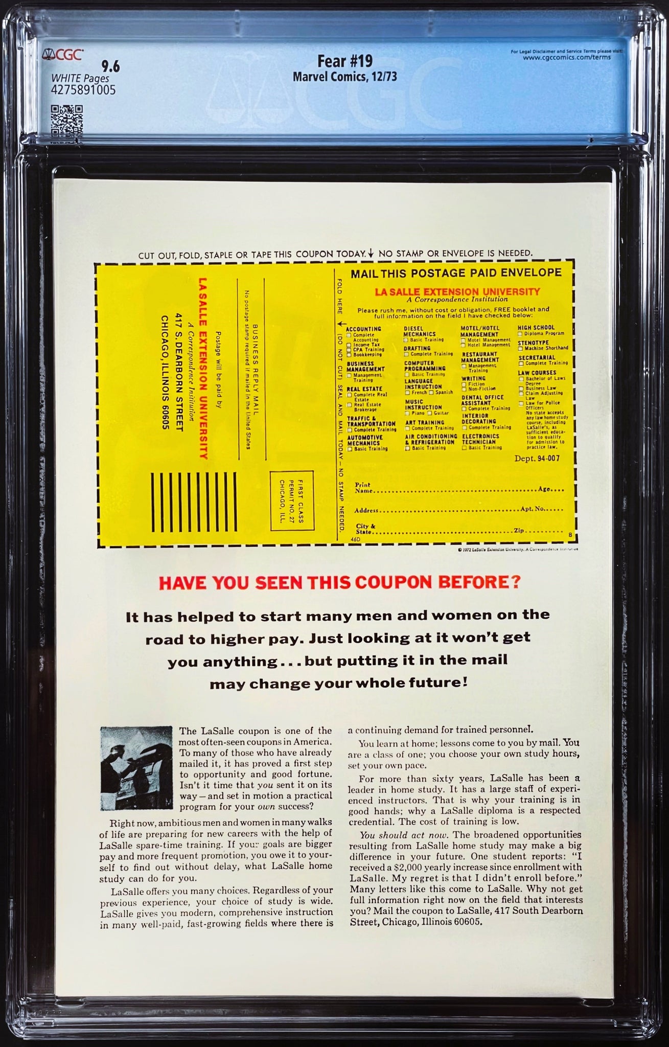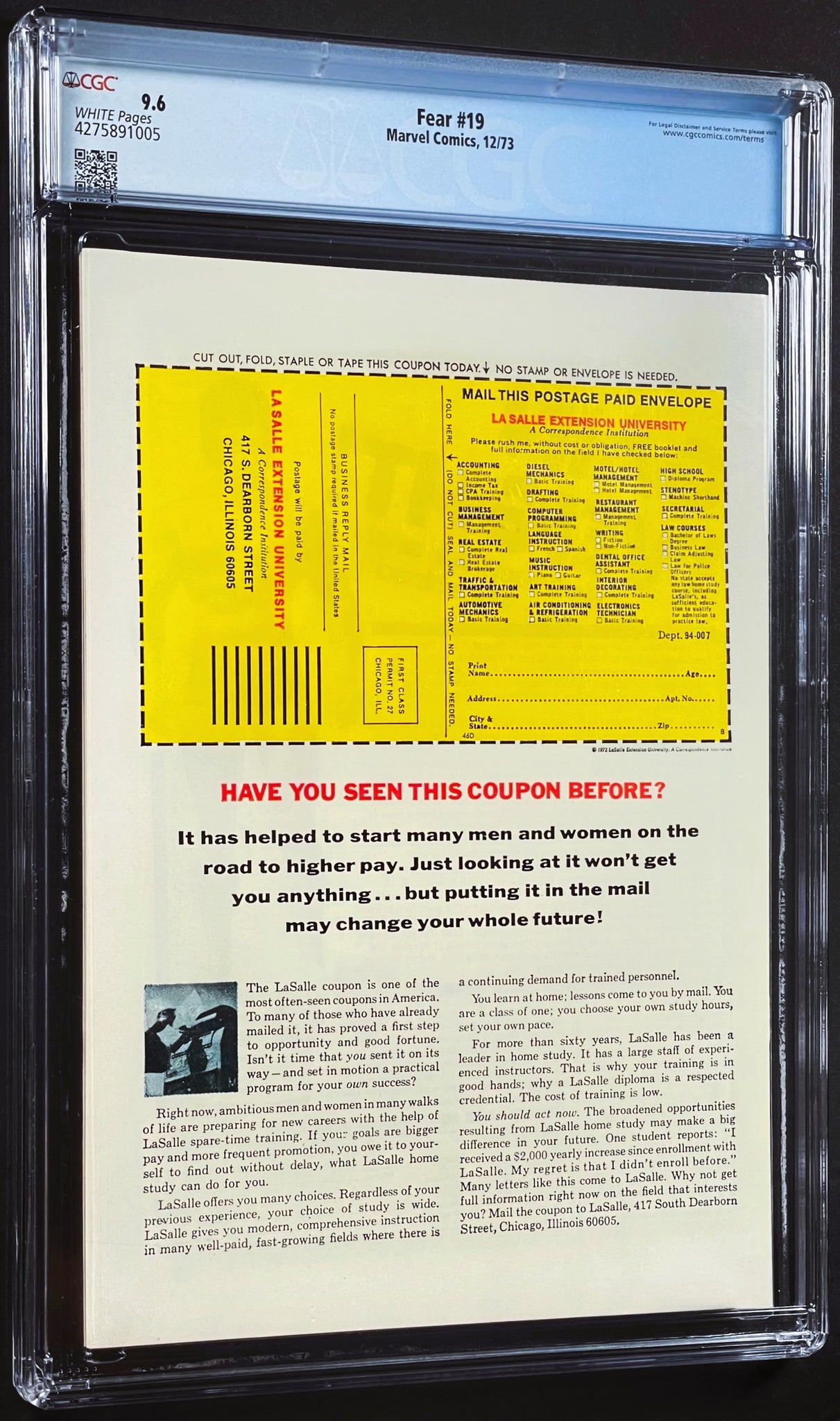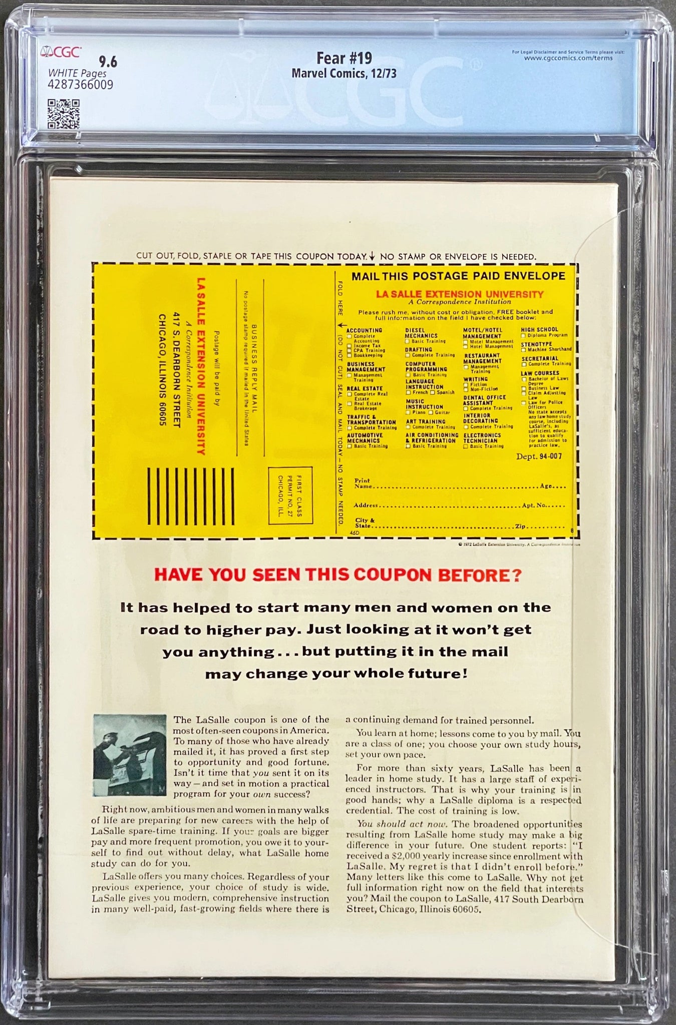 Adventure Into Fear #19 CGC 9.6 White 1st Appearance Howard the Duck 1973 Marvel Comics