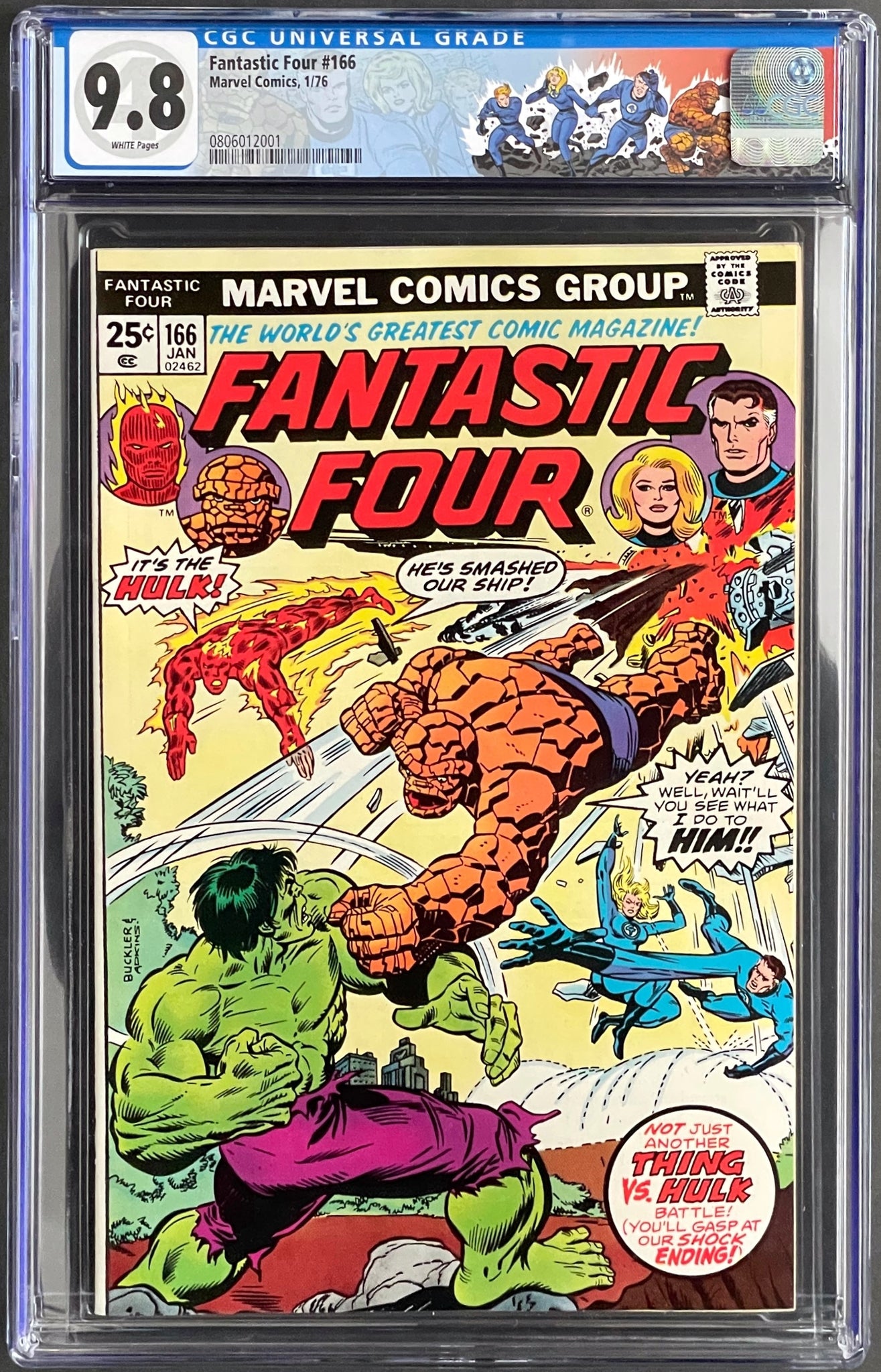 Fantastic Four #166 CGC 9.8 White 1976 Marvel Comics Hulk vs. Thing