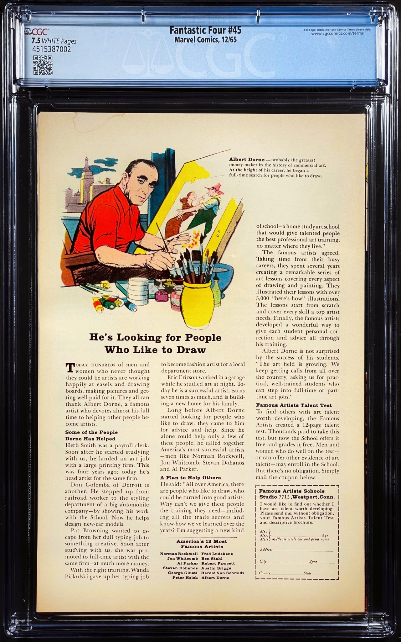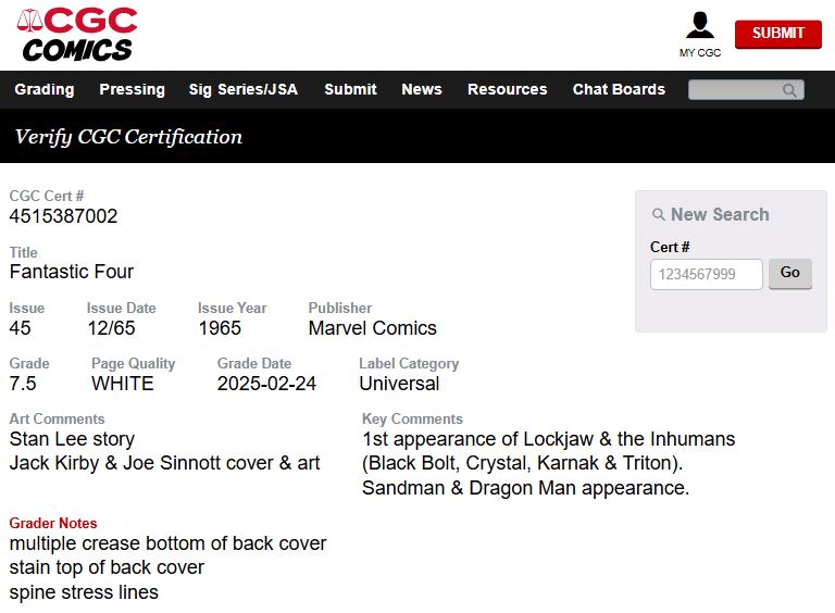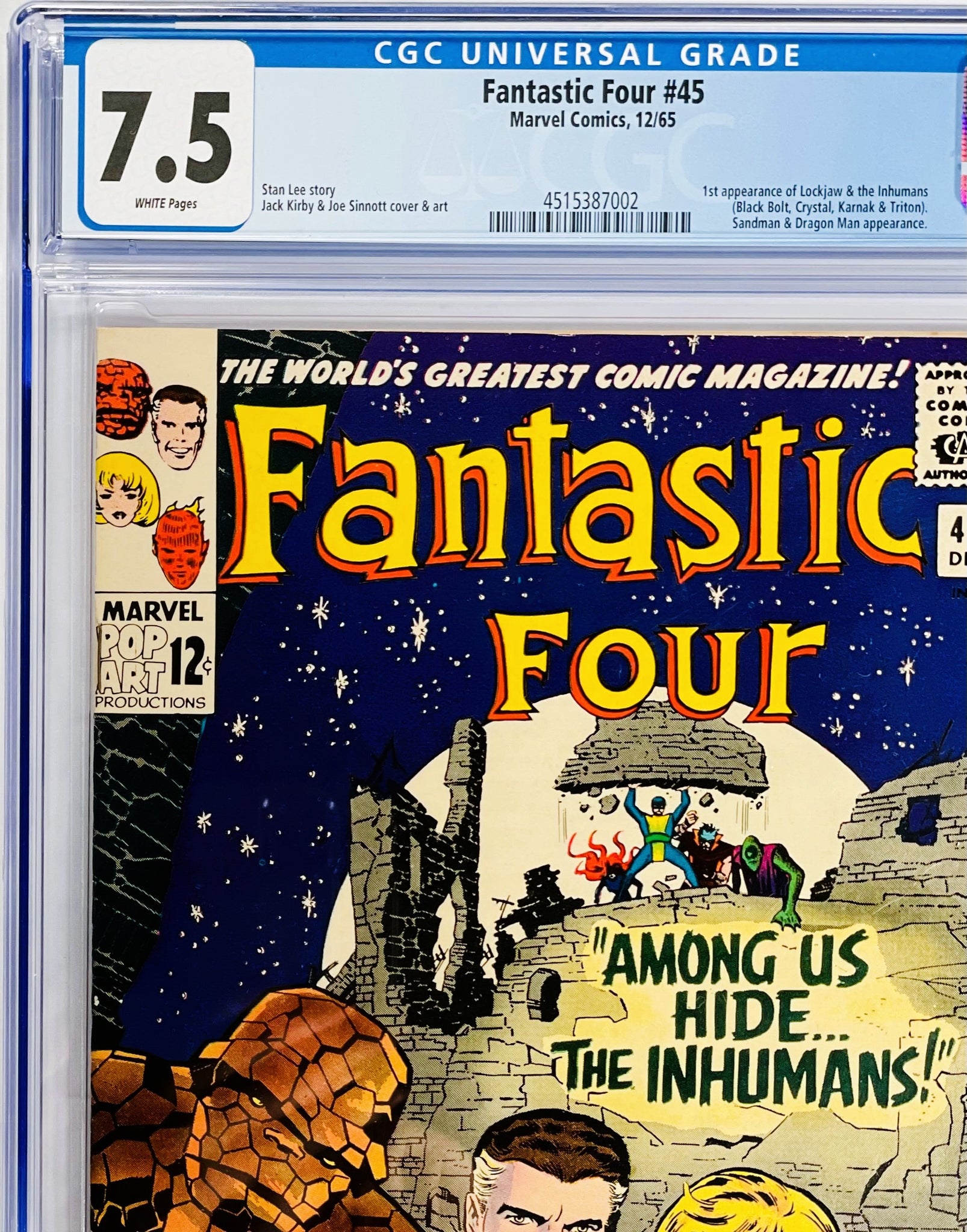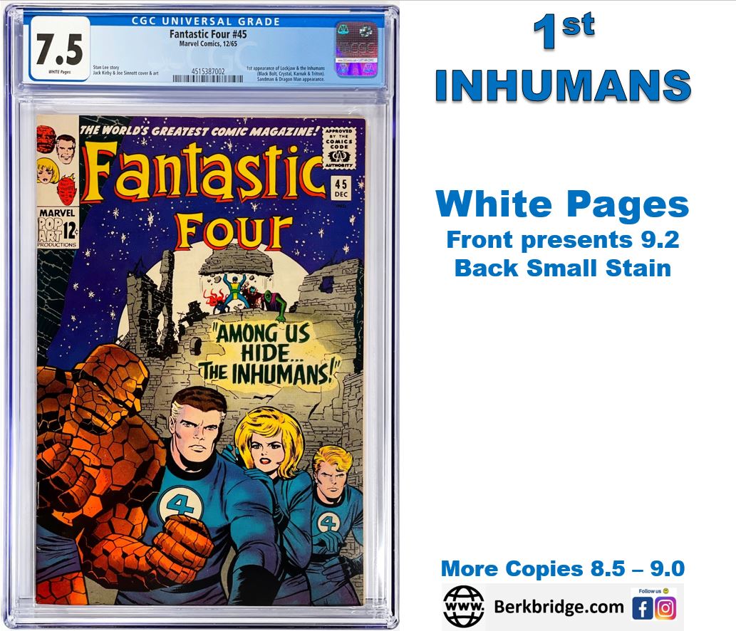 Fantastic Four #45 CGC 7.5 White Pages 1965 Marvel Comics 1st Appearance INHUMANS (Nice as 9.2)