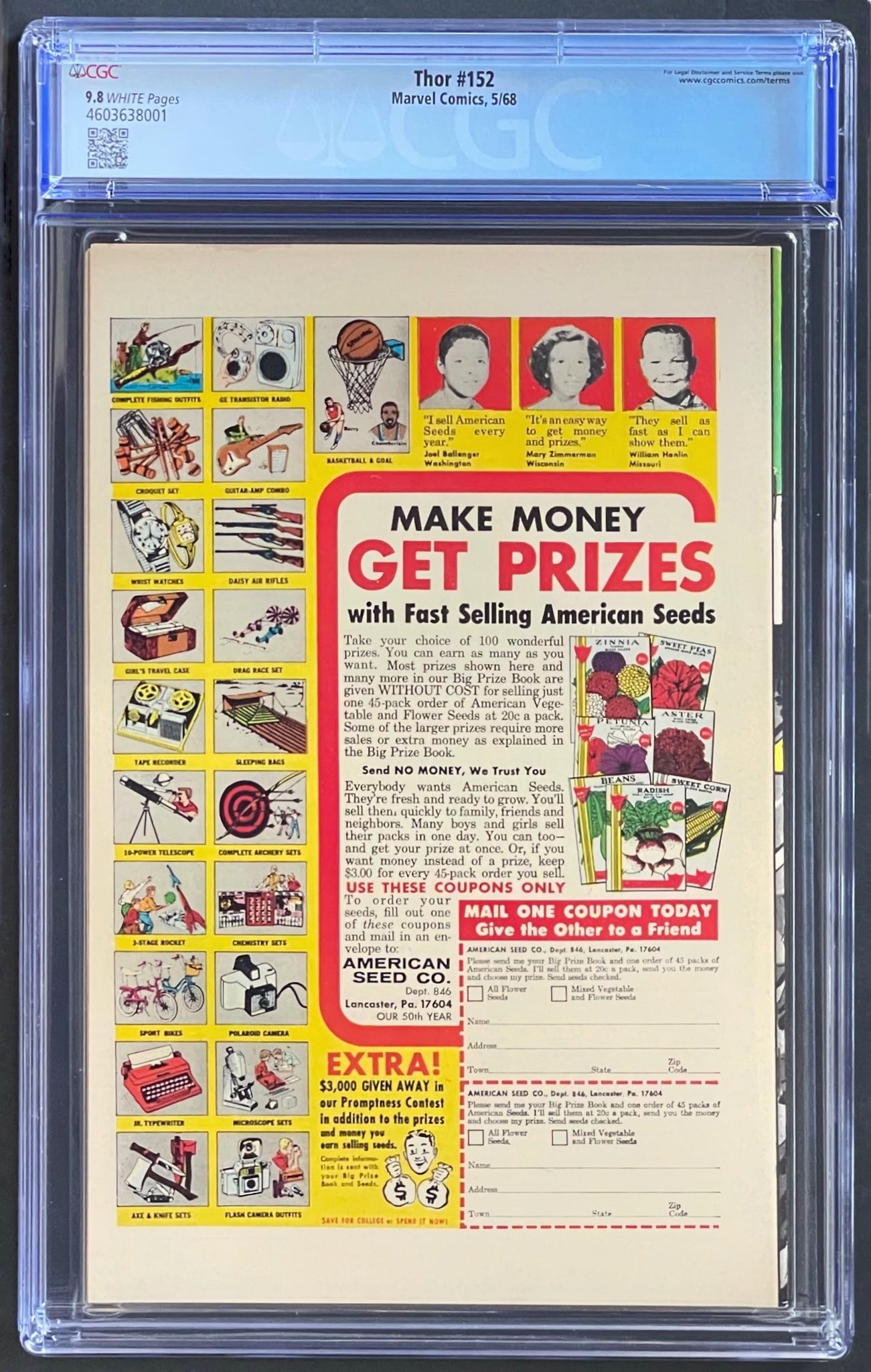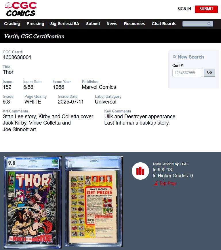 Thor #152 CGC 9.8 White Pages 1968 Marvel Comics